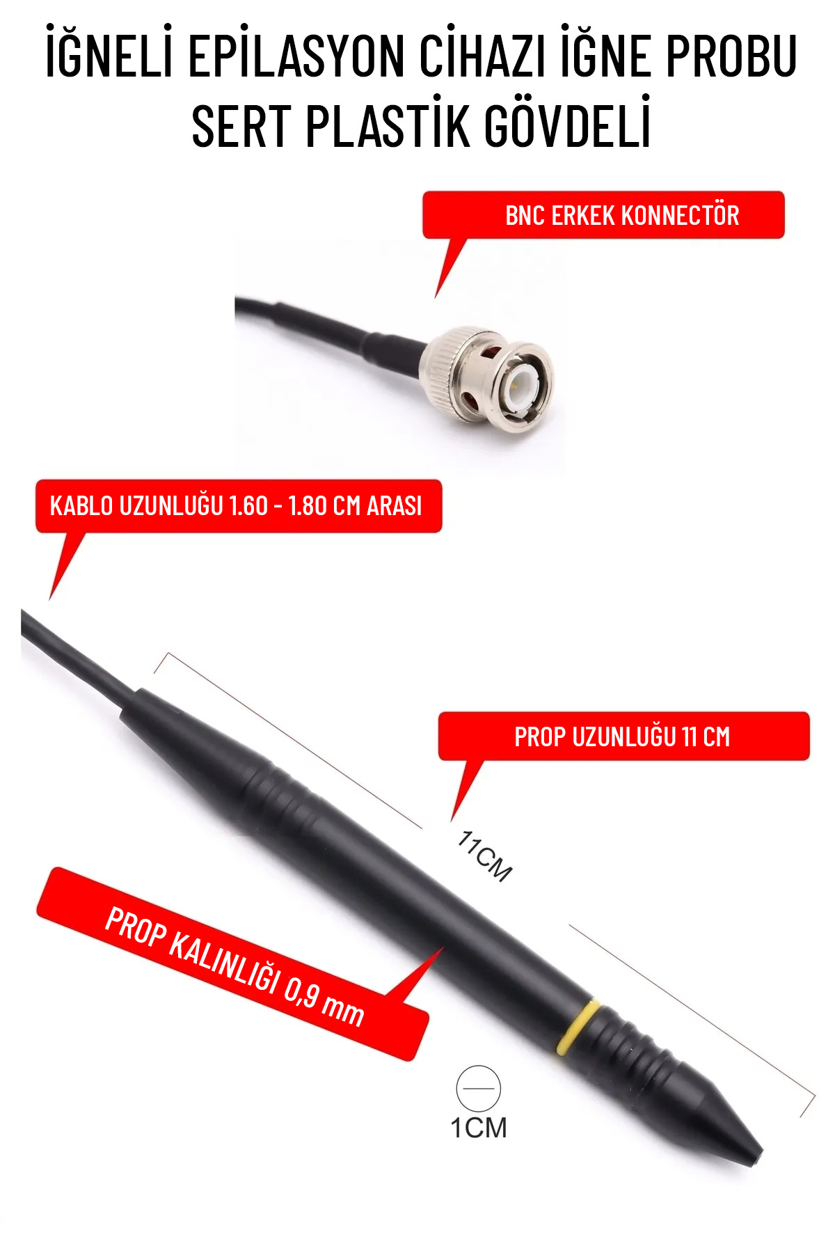 Cesa Markalı İĞNELİ EPİLASYON CİHAZI İĞNE PROBU - Sert Plastik Gövdeli Kablo Uzunluğu 1.6-1.8cm arası ; bnc Erkek Konnectör ; Prop Uzunluğu 11 cm ; Prop Kalınlığı 0.9 mm ; İğneli epilasyon, cilt altındaki tüy köklerini yok etmek amacıyla kullanılan özel ve etkili bir epilasyon yöntemidir. İğne probu, bu işlemi gerçekleştirmek için tasarlanmış özel bir aparattır. Cildin altına nüfuz eden ince iğneler sayesinde tüy kökleri tahrip edilir, zamanla tüylerin çıkmasını engelleyerek kalıcı bir epilasyon sağlar.