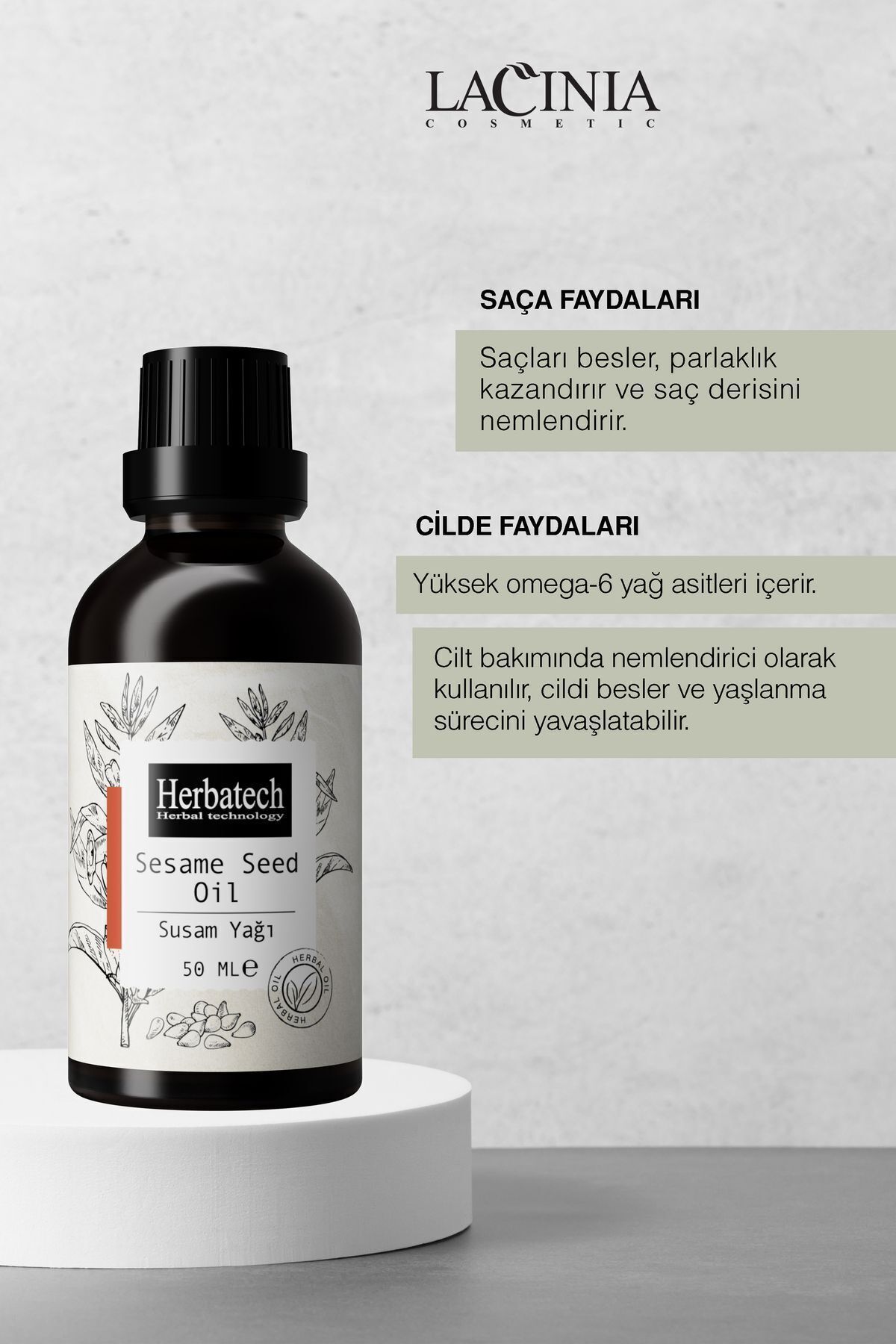 Yüksek omega-6 yağ asitleri içerir. ; Cilt bakımında nemlendirici olarak kullanılır, cildi besler ve yaşlanma sürecini yavaşlatabilir. ; Saça faydaları: Saçları besler, parlaklık kazandırır ve saç derisini nemlendirir. ; Susam yağı, susam tohumlarının preslenmesiyle elde edilen doğal bir yağdır. ; Besleyici özellikleriyle bilinen bu yağ, cilt ve saç bakımında yaygın olarak kullanılır. ; Cildi nemlendirir, antioksidanlarıyla yaşlanma belirtilerini azaltır ve cilt sağlığını korur. ; Ayrıca saçlara parlaklık verir, saç derisini besler ve kepek oluşumunu engeller. ; Anti-inflamatuar özellikleri sayesinde ciltteki tahrişi yatıştırır ve sakinleştirir. ; Hafif dokusu cilt tarafından kolayca emilir ve yağlı bir his bırakmaz. ; Doğal yapısıyla cilt ve saç bakımında güvenle kullanılabilir, sağlıklı ve parlak bir görünüm sağlar.;