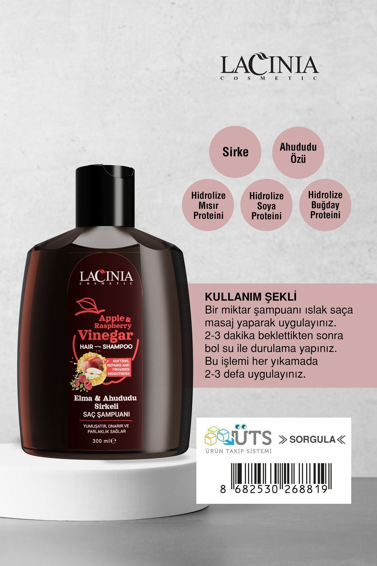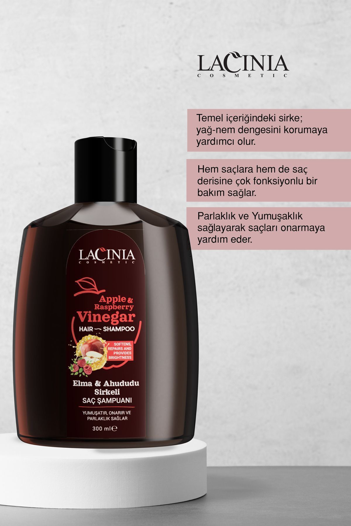 Temel içeriğindeki sirke yağ-nem dengesini korumaya yardımcı olur. ; Hem saçlara hem de saç derisine çok fonksiyonlu bir bakım sağlar. ; Parlaklık ve yumuşaklık sağlayarak saçları onarmaya yardım eder. ; Elma ve ahududu sirkesi içeren şampuan, saç sağlığını desteklemek için doğal ve etkili bir çözümdür. ; Elma sirkesi saç derisini dengeleyerek kepek oluşumunu önler ve saçın parlaklığını artırır. ; Ahududu sirkesi ise saçın doğal pH dengesini korurken saç tellerini güçlendirir ve saçın hacmini artırır. ; Bu şampuan, saçları derinlemesine temizlerken aynı zamanda saç derisini besler ve canlandırır. ; Doğal içeriğiyle saçlara yumuşaklık ve parlaklık kazandırırken, saçın sağlıklı uzamasına da yardımcı olur.;