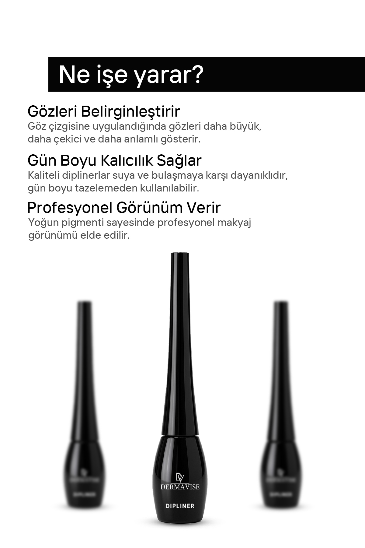 Suya Dayanıklı Dipliner Suya dayanıklı formülü ile uzun süreli kalıcılık sağlar, suya girdiğinizde bile makyajınızın bozulmasını önler.; Mat görünümüyle sofistike ve modern bir stil sunar, gün boyu pürüzsüz bir bitiş sağlar.; İçeriğindeki su bazlı bileşenler sayesinde cildinize zarar vermeden etkili bir şekilde uygulanır.; Kolay sürülür yapısıyla hızlı ve pratik kullanım imkanı tanır; zamandan tasarruf ederken mükemmel sonuç elde edersiniz.; Kirpik diplerini gölgelemek için kullanılır .; İnce uçlu fırçası kuyruk yapımını kolaylaştırır .; Göz hatlarınızı daha belirgin olmasını sağlar .; Kullanım Şekli Dipliner fırçası ile kirpik diplerine sürülerek uygulanır .; Ürünü çalkalayınız .; Fırçasını yerinden çıkarınız ve kirpik diplerine nazikçe uygulayınız .;